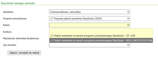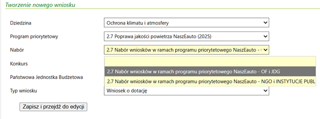 - oznaczenie instytucji właściwej do rozpatrzenia wniosku (NFOŚiGW),